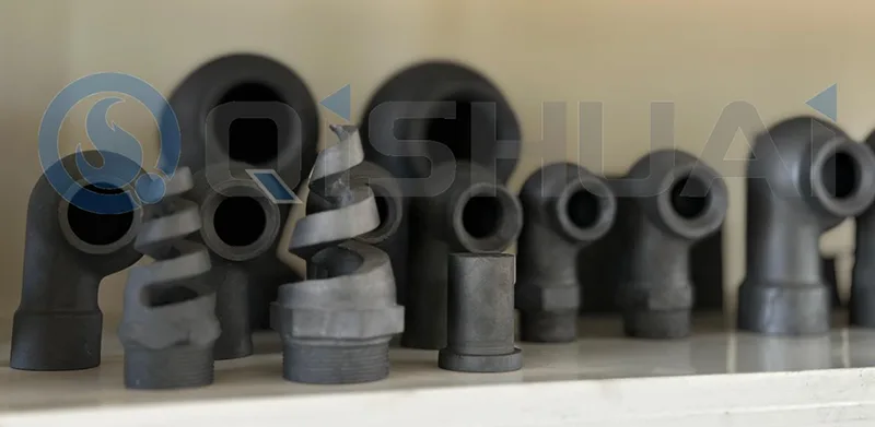 نازل های کاربید سیلیکون اغلب در حذف گرد و غبار، پوشش اسپری، گوگرد زدایی و سیستم های احتراق به عنوان قطعات مقاوم در برابر سایش یافت می شوند. علاوه بر نازل‌های پروفیلی ساده، Qishuai می‌تواند با طراحی نازل‌های جدید با زاویه پاشش، سرعت جریان و اصلاحات مقاومت در برابر خوردگی در صورت لزوم، خواسته‌های مشتری را برآورده کند. SiC زمان کارکرد تجهیزات را طولانی می کند و هزینه طول عمر را کاهش می دهد.