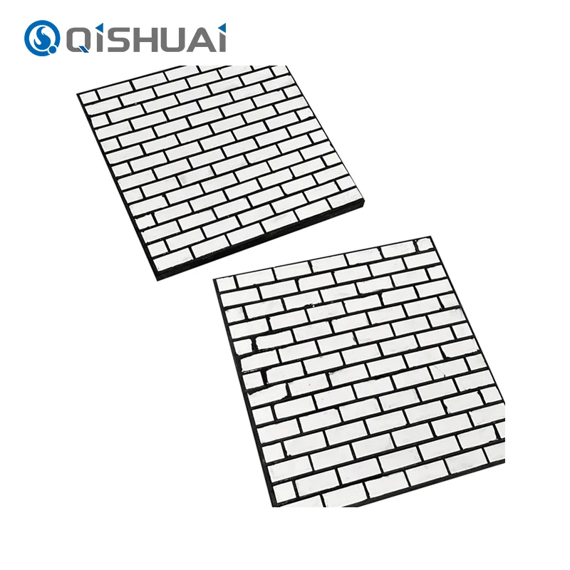 لایه سرامیکی از سرامیک آلومینا با سختی بالا با سختی HRA85 بالاتر استفاده می کند که نقش اصلی را در مقاومت در برابر فرسایش مواد ایفا می کند. درست مانند زره سخت، می تواند در برابر اصطکاک و ضربه انواع مواد سخت مقاومت کند و مقاومت در برابر سایش صفحه را تا حد زیادی بهبود بخشد.